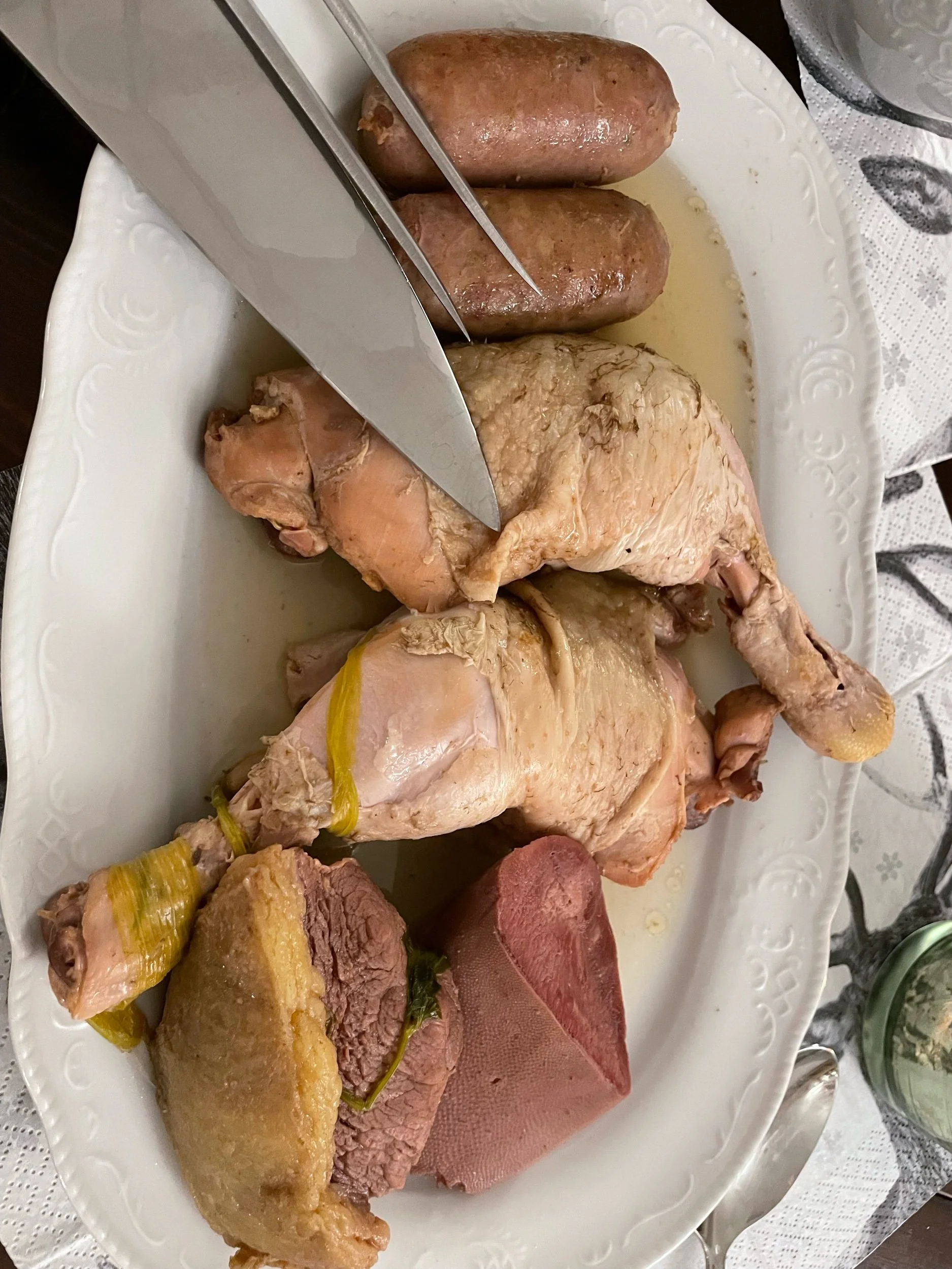 Als wir diesmal unseren Besuch anmeldeten, sagte ich, ich würde kochen. Meine Menüwahl? Sfoglia lorda in brodo, gefolgt von Bollito Misto.